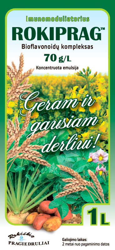 Rokiprag - is a completely natural emulsion with no ingredients that have been achieved by the chemical synthesis route.,. Developmental Agro Technologies become more and more popular not only for yield purposes, but also for vegetable product quality and safety and environmental sustainability issues. Research data from fertilization revealed that synthetic fertilizer plants absorb only part of the useful materials, and the rest disperses in the environment, or is transformed into plants in less accessible forms of nutritional elements. Quite large farmers using mineral fertilizer do not only fail in their functions, but also it has a negative impact on the environment (ground water and ground). Improving the efficiency and more efficient use of fertilizer nutrients, fertilizers reduce the negative impact on the environment, in recent times, both in Europe and in the world at a state level to promote and create ecological, natural, biodynamic farms. For these reasons, more and more effort to use organic, bio-organic fertilizer is fostered. Depending on the legal framework of each state, such fertilizers are allowed to use organic and biodynamic production farms. This complex of bioflavonoids naturally isolated from plants, could potentially be used not only in traditional farms, but also in organic farms, or those holdings that aim to grow the highest quality agricultural products.