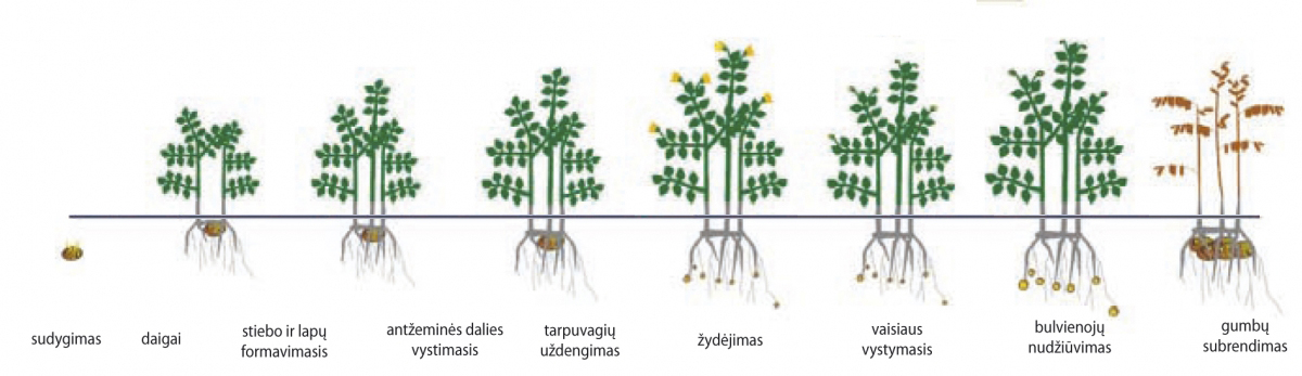 Bulvės | 150 | 1. Stiebo ir lapų formavimosi tarpsnis 2.Prieš tarpuvagių uždengimą |