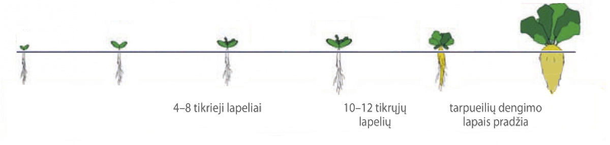 Cukriniai runkeliai | 200 | 1. 4 – 8 lapų tarpsnis 2. 10 – 12 lapų tarpsnis |